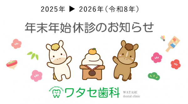 12月27日(土)午後~1月4日(日)は冬期休暇の為、休診させていただきます。